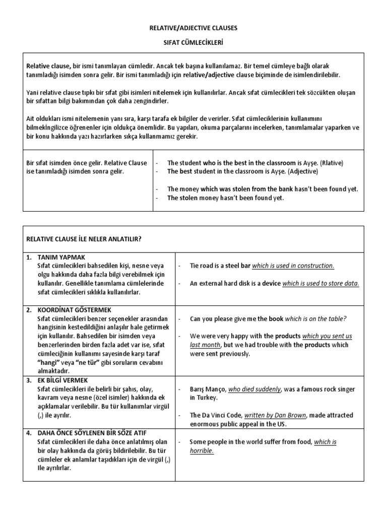 Relative Clauses iki cümleyi birleştirmek için ve genellikle anlatımda akıcılığı sağlamak için kullanılırAşağıdaki örnekleri inceleyiniz. Kapıyı bir kadın açtı. About Press Copyright Contact us Creators Advertise Developers Terms Privacy Policy Safety How YouTube works Test new features Press Copyright Contact us Creators.